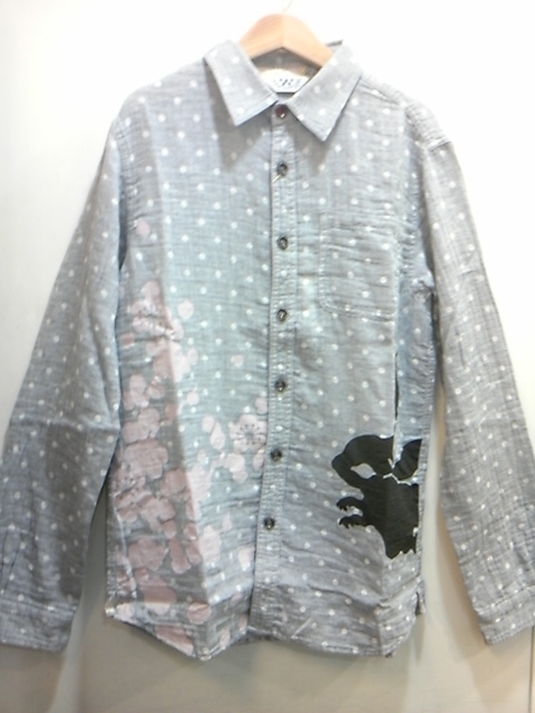 福梅と影兎柄水玉ジャガード長袖シャツ。