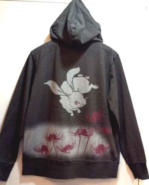 フロントの兎は、刺繍です。前開きのパーカーです。