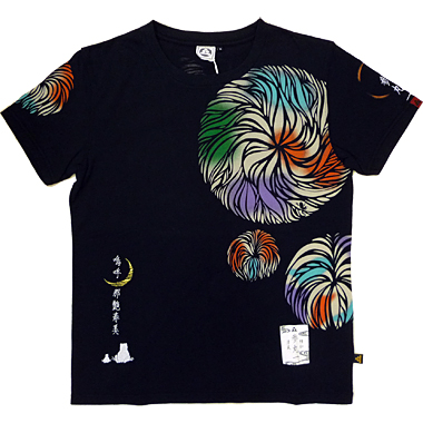 日本情緒溢れる情景をバックにそっと色づけされた花火が浮かぶ。