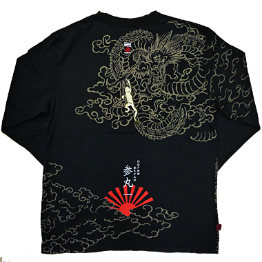 XXL 59 75 50 64 手描きで繊細に描かれた雲に浮かぶ龍が大胆な絵柄ですが、抜染でシンプルに表現して おります。