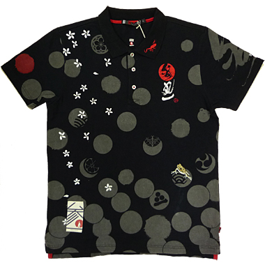 ドットを筆書きで描き、家紋を隠しデザインとして入れる事により、