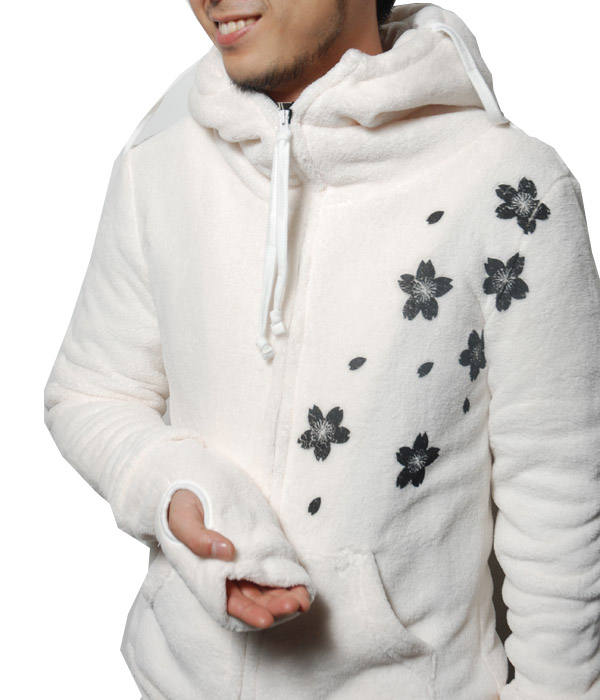 <デザイン>着心地の良いパイル生地をベースにしたパイルパーカに、舞い散る桜の花の情景を施しました。<素材>本体 ポリエステル 100%