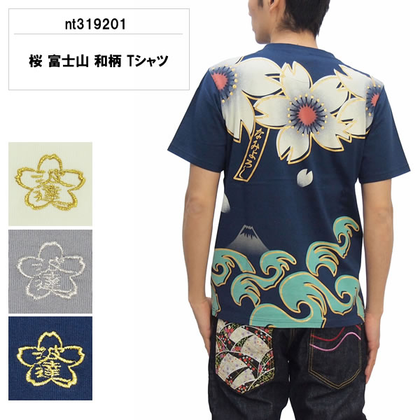 素材 綿:100%・【別布】綿:100%・32/2天竺 フロント&バックに描かれた桜が特徴の和柄Tシャツ。