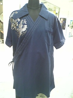 甚兵レイヤードTシャツ。ありそうでなかったカット製の甚兵に襟をつけてポロシャツ風に。