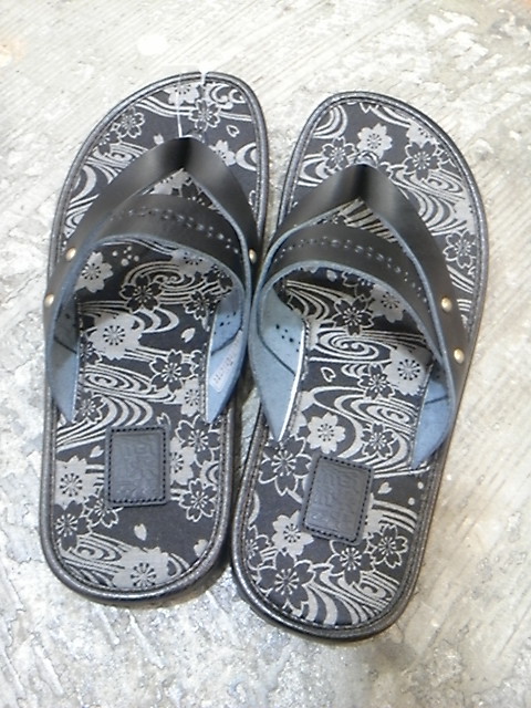 皮革×ジャガードのサンダル。