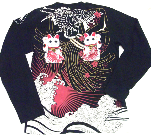 絡繰魂 招き猫刺繍T