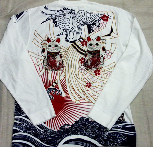 素材 綿 100% 縁起の良い招き猫とつるの組み合わせです。