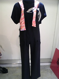 サロペットパンツです。帯地の肩紐が素敵な感じです。