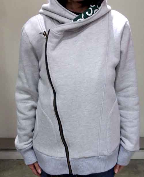 素材 綿 100% 裏起毛の素材で、アシンメトリーパーカーを作りました。