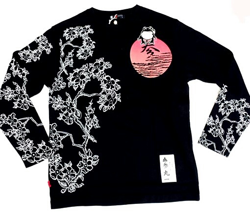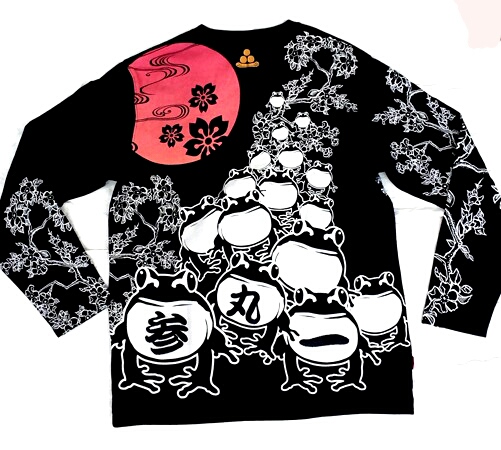 福蛙の夜桜見物?ユーモラスな福蛙をこれでもかというくらいにプリントしてあります♪