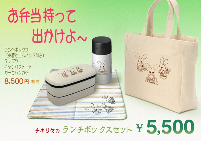 ランチボックスとタンブラー、トート、ガーゼハンカチがセットになって8500円相当ですが、今回は5500円+税です。