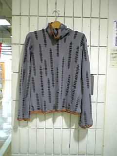 柔らか素材の衿と裾に和柄を取り入れてます、
