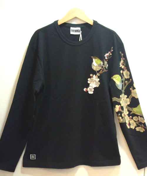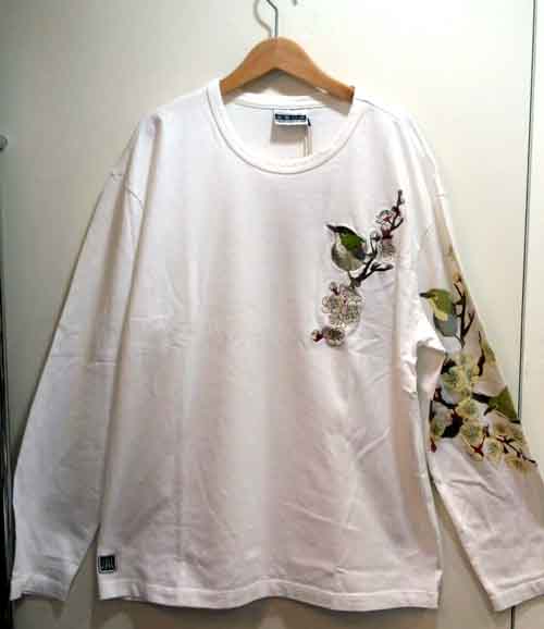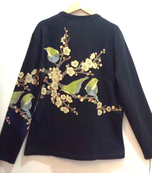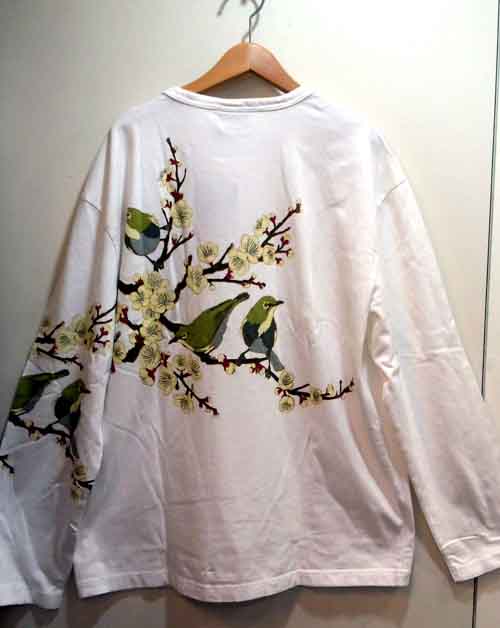 前身ごろには、繊細な刺繍で目白を表現しています。