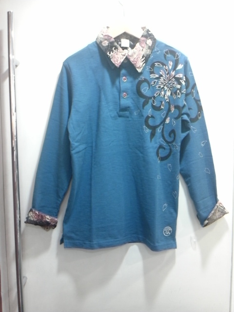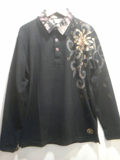 レイヤードポロシャツ桜刺繍柄。