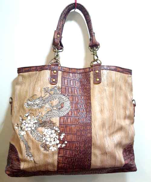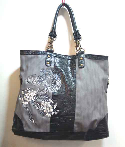 表には、龍の刺繍ががっつり入ってかっこいいよ。持ち手は、バンブーの型押しです。