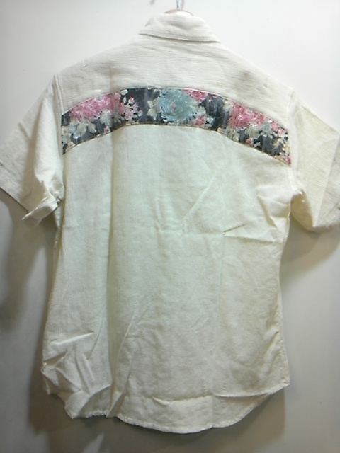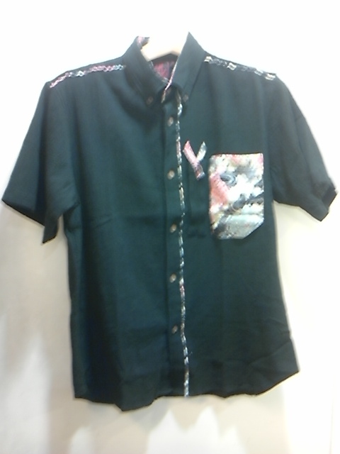 扇子入れポケット付き揚柳シャツ。