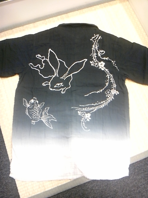 柳桜と金魚柄ガーゼシャツひたし染め