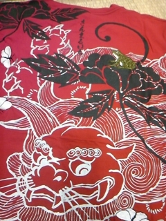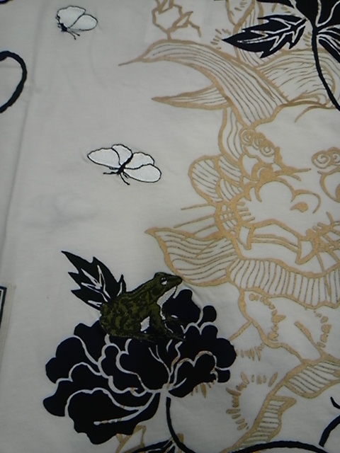 唐獅子牡丹柄Tシャツ。いつもと違う蛙の表情に注目してね。