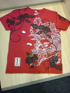唐獅子牡丹柄Tシャツ。