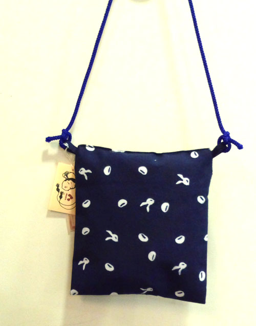 素材 綿 100% 日本製 サイズ 16㎝×14㎝ おなじみの手ぬぐいシリーズから、刺子の萩葡萄兎柄で小さな袋を作りました。