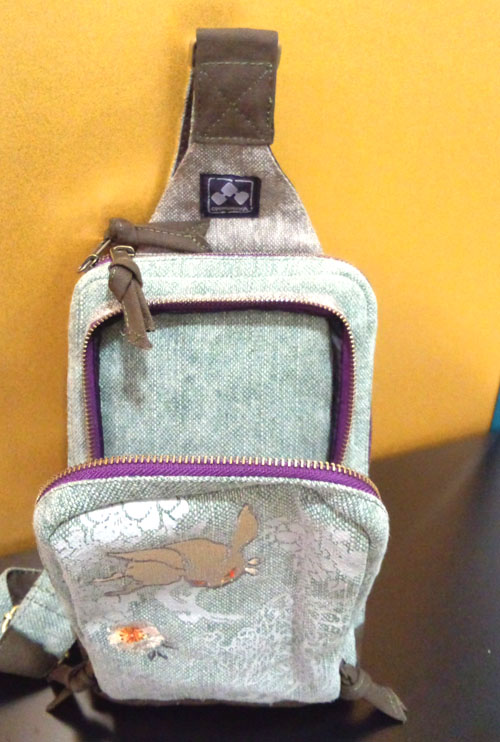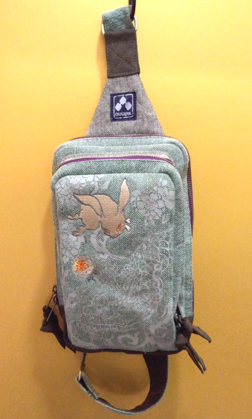 八重桜龍兎柄の布地でできたボディーバッグです。