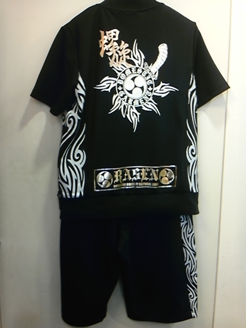 白は顔料、金は金箔プリントのセットアップジャージ。