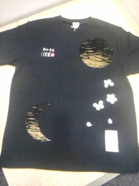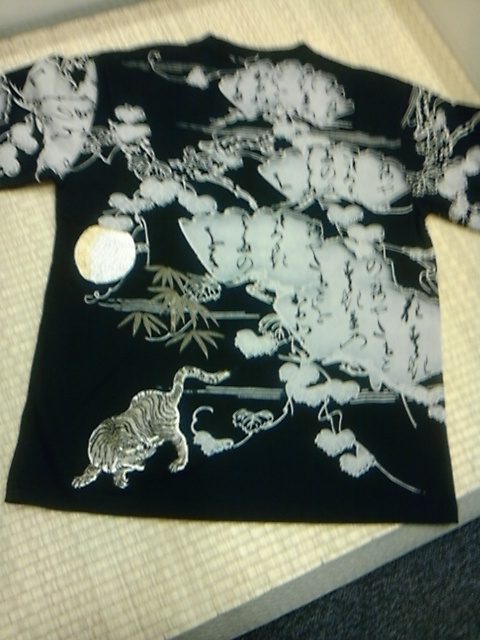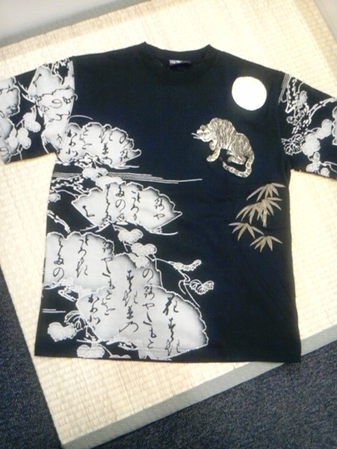 和歌扇と月虎柄刺繍抜染Tシャツ。