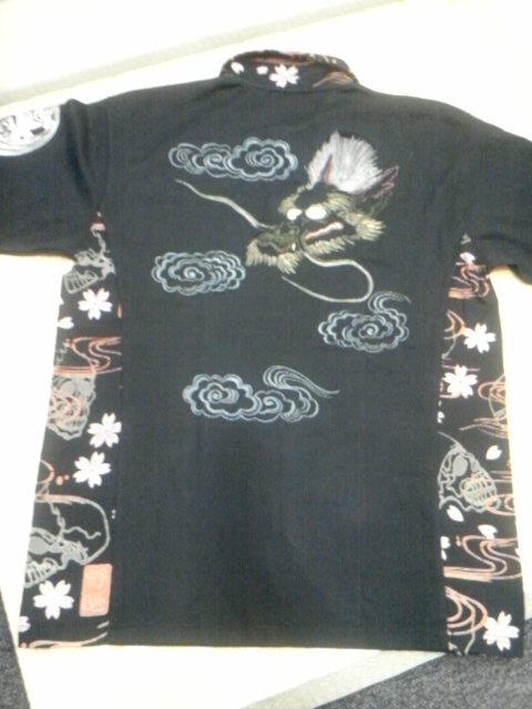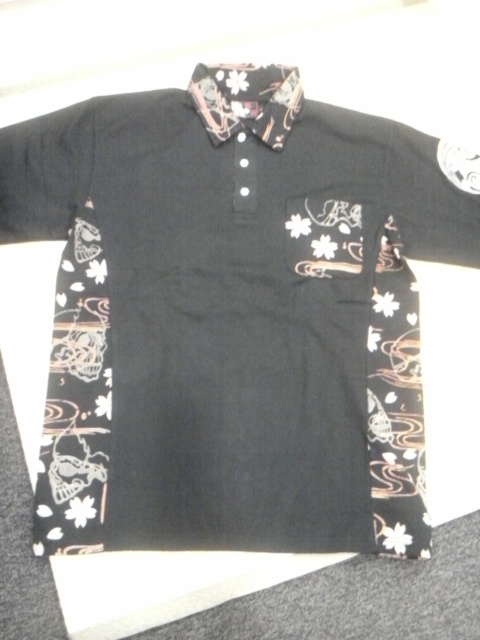 桜切替雲龍柄刺繍抜染ポロ
