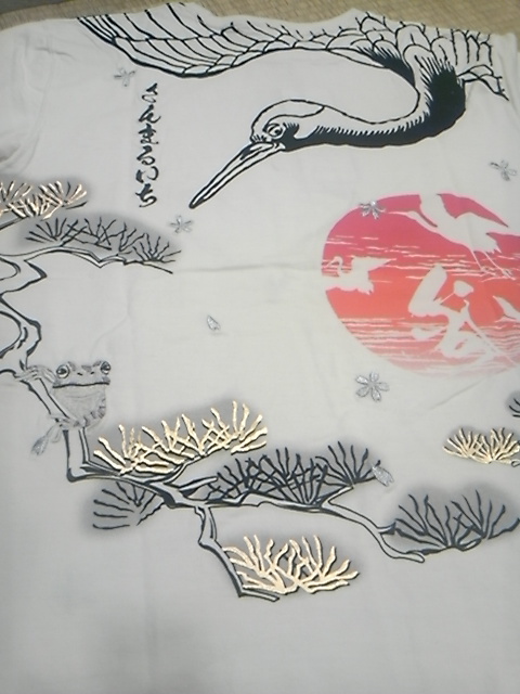 鶴にフロッキープリント、松に箔プリント。桜を刺繍と贅を尽くした手法で表現してあります。