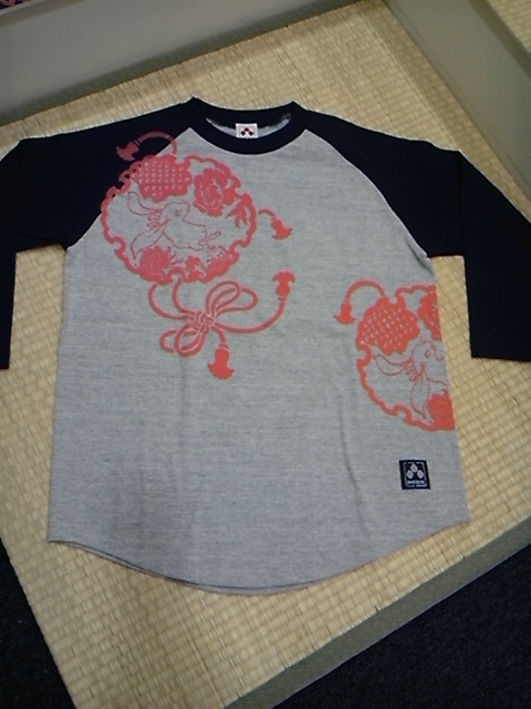 雪輪兎柄ベースボールTシャツ
