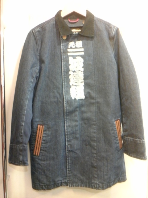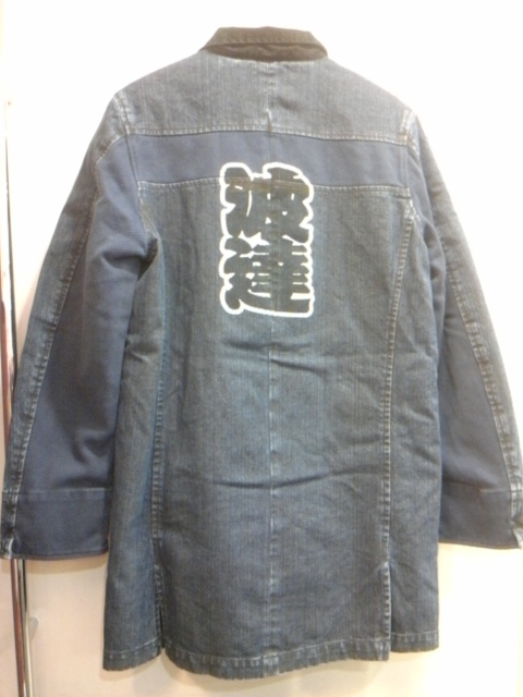 刺し子とデニムを組み合わせポケット口には帆前掛け用の紐を使用した渋い一品。