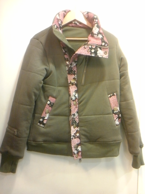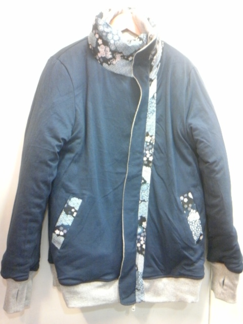 ちりめんスウェット地中綿リバーシブルジャケット。
