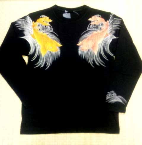 素材 綿 100% 両胸、両腰にそれぞれ、別色の鯉が向き合っています。 価格:\8,820(税込)