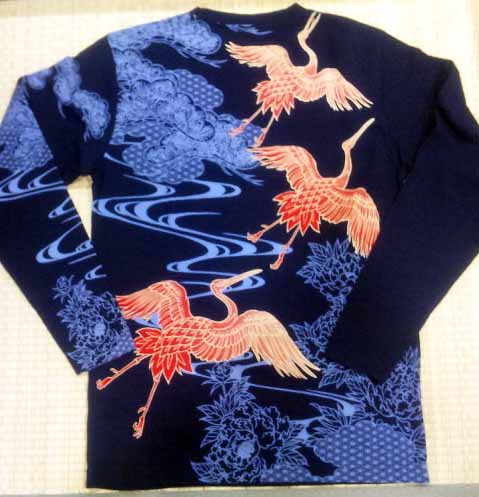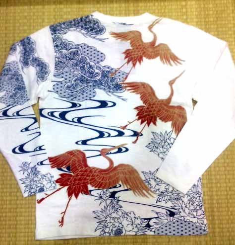素材 綿 100% 赤い群生した鶴を描きました。プリントは、抜染プリントですから、割れてくることもありません。 価格:\9,345(税込)