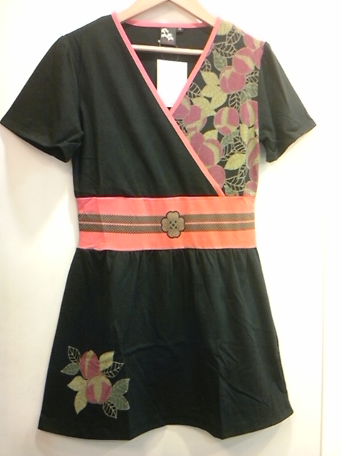 ウエストの切替を半幅帯に見立ててあります。