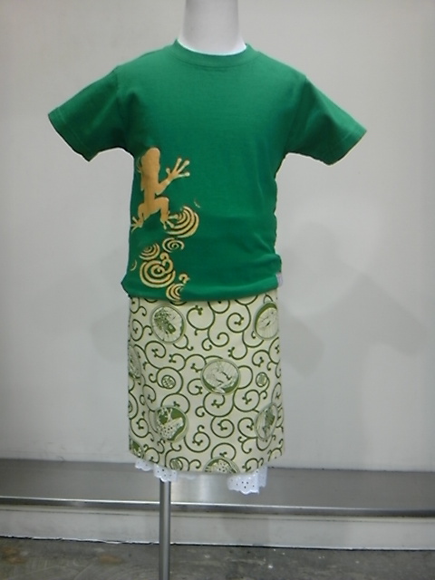 可愛い蛙柄の前掛けを子供の巻きスカートにしてみました。