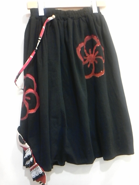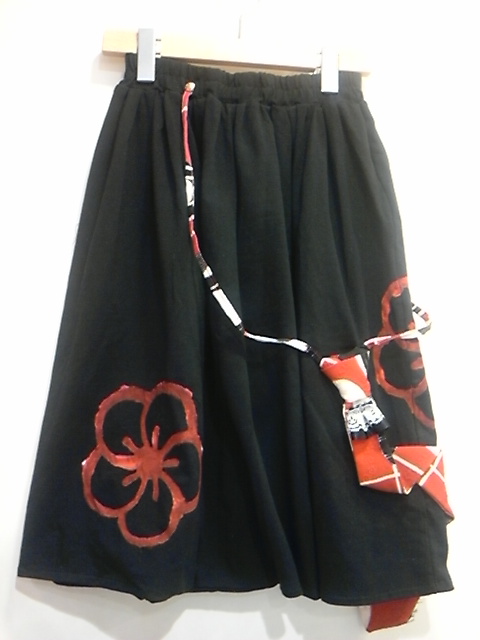 ネクタイモチーフ付き変形スカートパンツ。