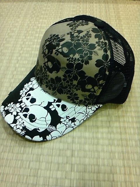 髑髏桜柄キャップ