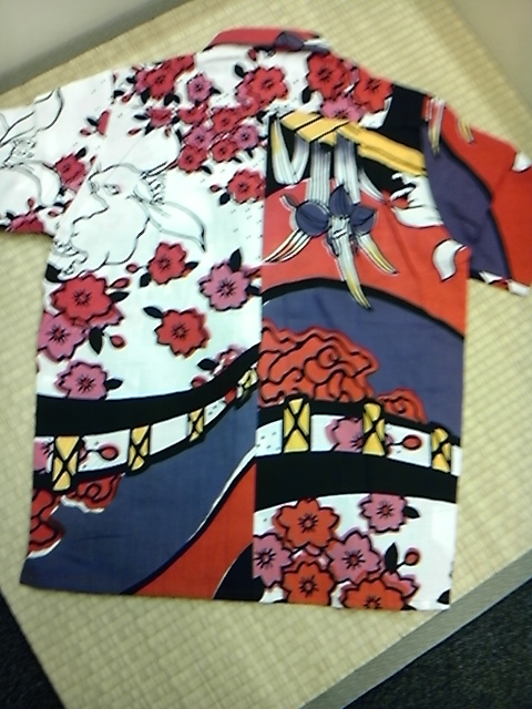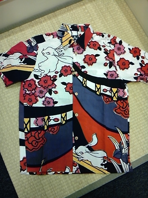 桜菖蒲兎柄の手ぬぐいシャツ。