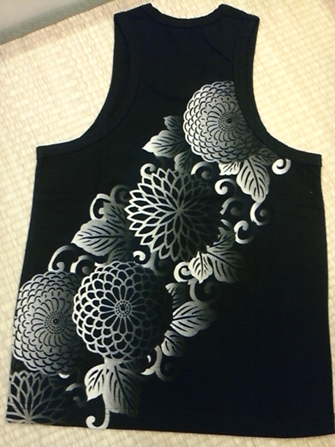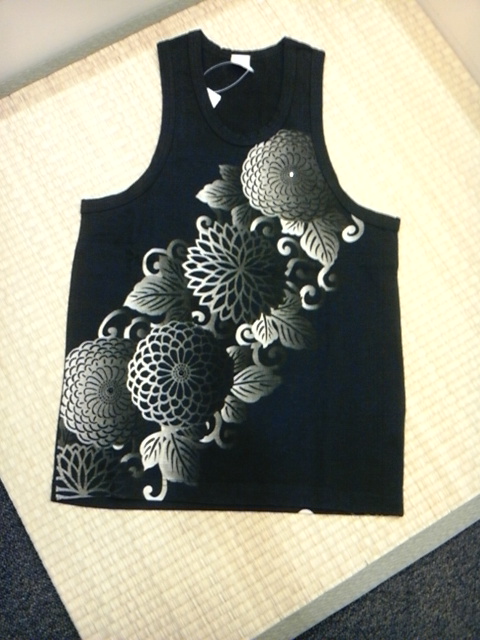 菊柄タンク 菊の中心にラインストーンがついてます。