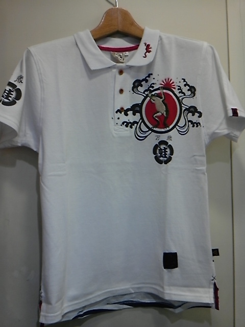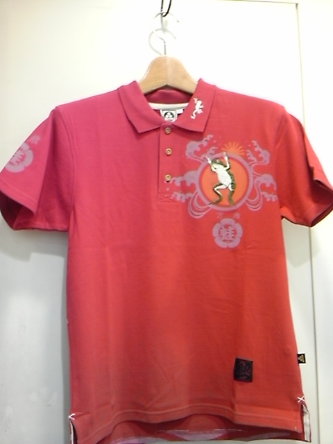 万歳蛙柄ポロシャツ。