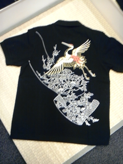 華鶴柄ポロシャツ。