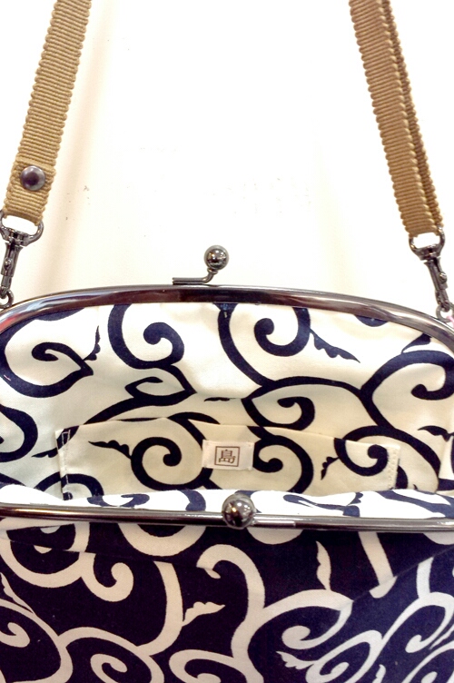 がま口ポシェット。唐草紺