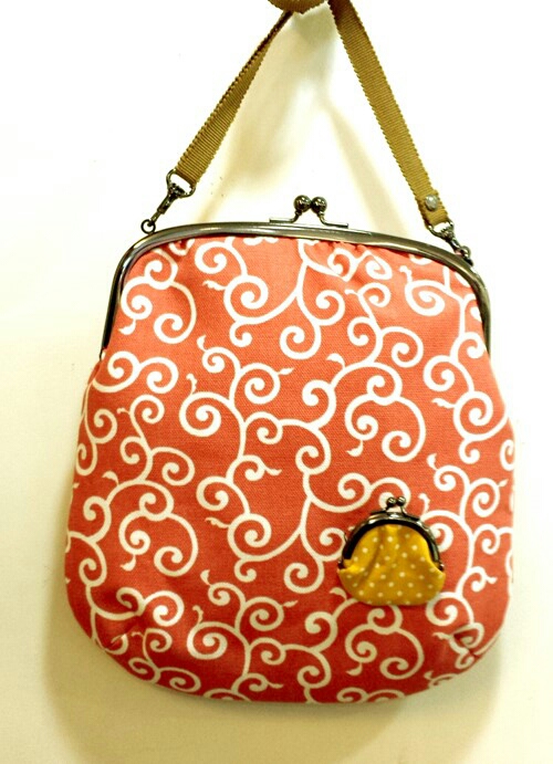 がま口ポシェット。唐草オレンジピンク?