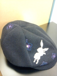 水仙兎刺繍ニットハンチング。