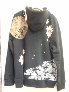 月夜の華柄パーカー。黒