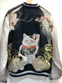 鶴亀招猫柄スカジャン。