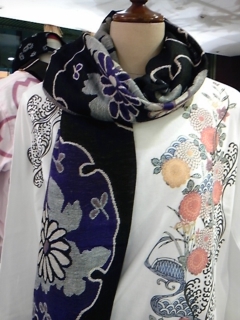 菊と雪輪柄ジャガードのストール。