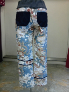 花柄の綺麗なパンツ。ウエストゴムは簡単に調整ができます。