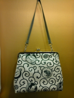 唐草模様のバッグ今回は手持ちは少し短いです。今までのがま口バッグを持っていらしゃる方は持ち手を変えられてもいいですね。